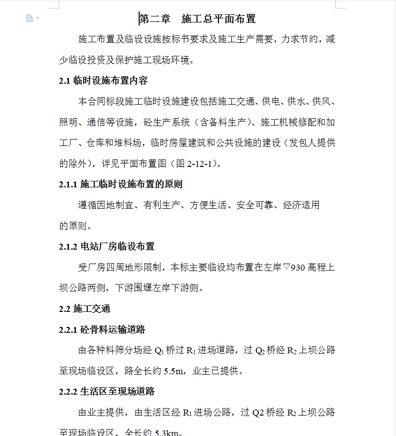 本合同标段施工临时设施建设包括施工交通、供电、供水、供风、照明、通信等设施,砼生产系统(含备料生产)、施工机械修配和加工厂、仓库和堆料场,临时房屋建筑和公共设施的建设(发包人提供的除外),详见平面布置图。