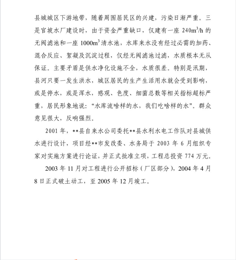 • ÏØ³Ç¹©Ë®¹¤³ÌÉè¼Æ¹¤×÷±¨¸æ 12P