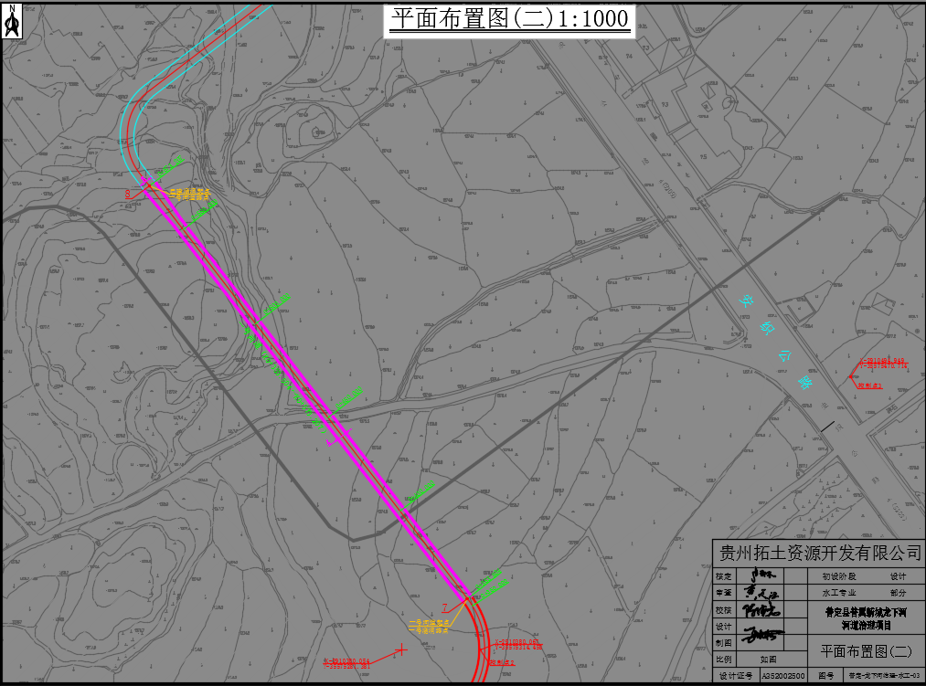 河道治理项目施工图纸包括:项目区地理位置图、河流水系图、工程水系图、河道地质纵剖面图、河道地质横剖面图、平面布置图、河道纵断面、一号涵洞横断面图、一号涵洞配筋图、一号河道横断面图、二号涵洞横断面图、二号涵洞配筋图、止水、排水大样图等。