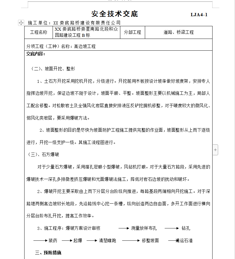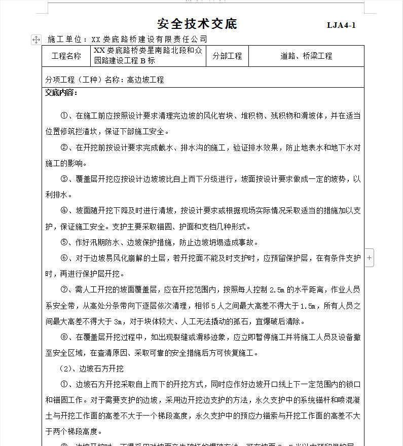 1、严格执行“高边坡专项施工方案”,不得擅自修改。