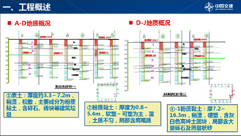 深基坑工程安全方案施工管理主要是工程概况、方案编制审批、方案过程实施、方案实施效果、总结及改进。水文概况:场区地下水类型主要为潜水、孔隙承压水和基岩裂隙水。潜水赋存于浅表层第四系黏性土中,受大气降水垂直渗入补给,水位受气候条件影响变化较大,无统一-水面 ,总体均为黏性土孔隙含水,富水性较差,水量小。孔隙承压水主要赋存于圆砾中,埋藏较深,分布范围及厚度差异性大,上部黏性土与下部砂质泥岩为相对隔水层,地下水补给条件差,富水性差,水量不大。圆砾层厚度自北向南1.0m~ 8.6m逐渐变厚。基岩裂隙水分布于砂质泥岩风化裂隙中,与上部圆砾层中水具有较好的连通性,接受其补给。勘察施工时,测得上层潜水滞水水位标高为26.77~ 30.10m (-8.83~-5.5m ;圆砾层承压水顶板水位高程12.95~ 16.52 ( -22.65~ -19.08) , 基坑底部与承压水层顶面高差3.98m~ 8.07m ,其中4.05m处为主楼电梯井基坑,3.98m为南侧裙楼承台处。
