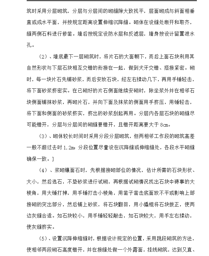 点击进入下载路基墙砌片石挡土墙施工方案