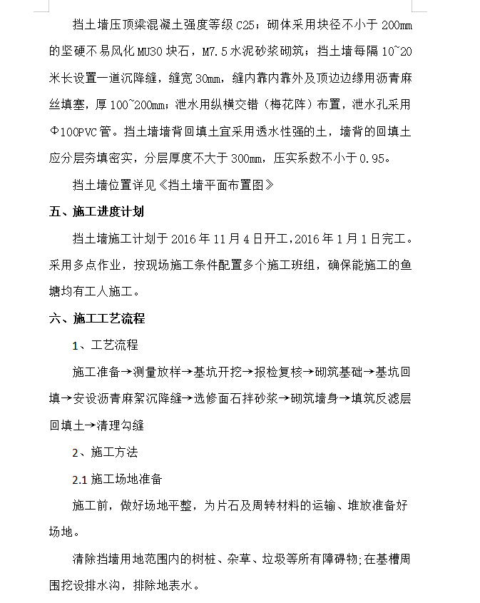 生活污水治理工程直立浆砌片石挡土墙施工方案