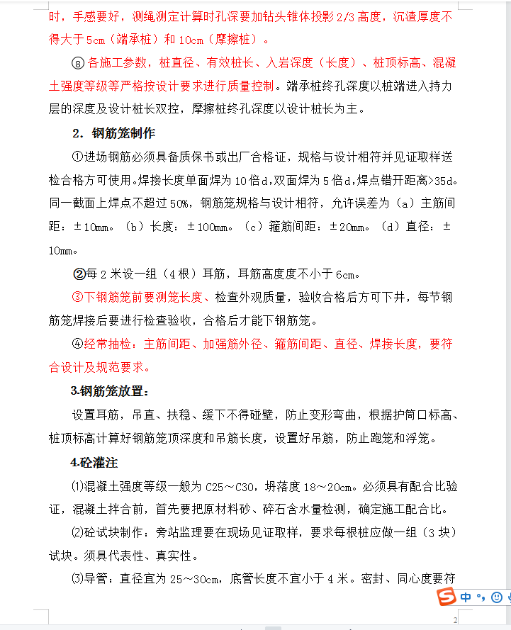 ׮λ¸´²âÑéÊÕ£ºÖáÏßÓë׮λµÄ²âÁ¿¶¨Î»±ØÐëÓÉרְ²âÁ¿ÈËÔ±²âÁ¿£¬Æ½Ãæ¼ì²é¡£×®Î»ÔÊÐíÆ«²î£ºa¡¢µ¥ÅÅÌõÐÎ×®»ùÑØ´¹Ö±ÖáÏß·½ÏòºÍȺ׮»ù´¡±ß×®µÄÔÊÐíÆ«²îΪD/6ÇÒ²»´óÓÚ100£»b¡¢ÌõÐÎ×®»ùÑØÖáÏß·½ÏòºÍȺ׮»ù´¡Öмä×®µÄÔÊÐíÆ«²îΪD/4ÇÒ²»´óÓÚ150£»c¡¢µ¥Öùϵĵ¥×®ÔÊÐíÆ«²îΪD/15£»d¡¢ÏàÁÚÁ½×®²»ÄÜÆ«Íùͬһ·½Ïò¡£