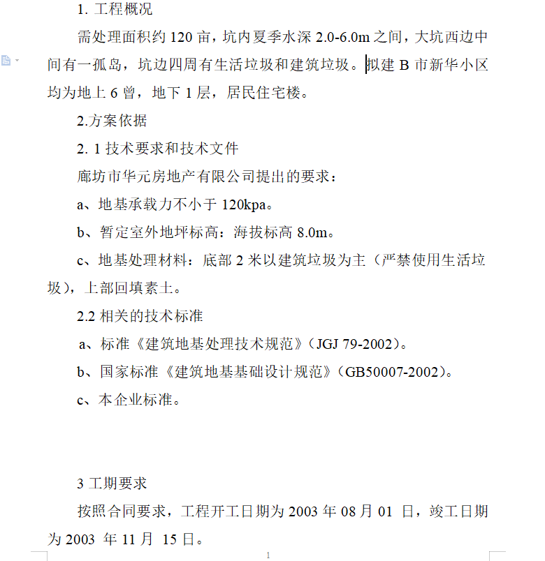需处理面积约120亩,坑内夏季水深2.0-6.0m之间,大坑西边中间有一孤岛,坑边四周有生活垃圾和建筑垃圾。拟建B市新华小区均为地上6曾,地下1层,居民住宅楼。