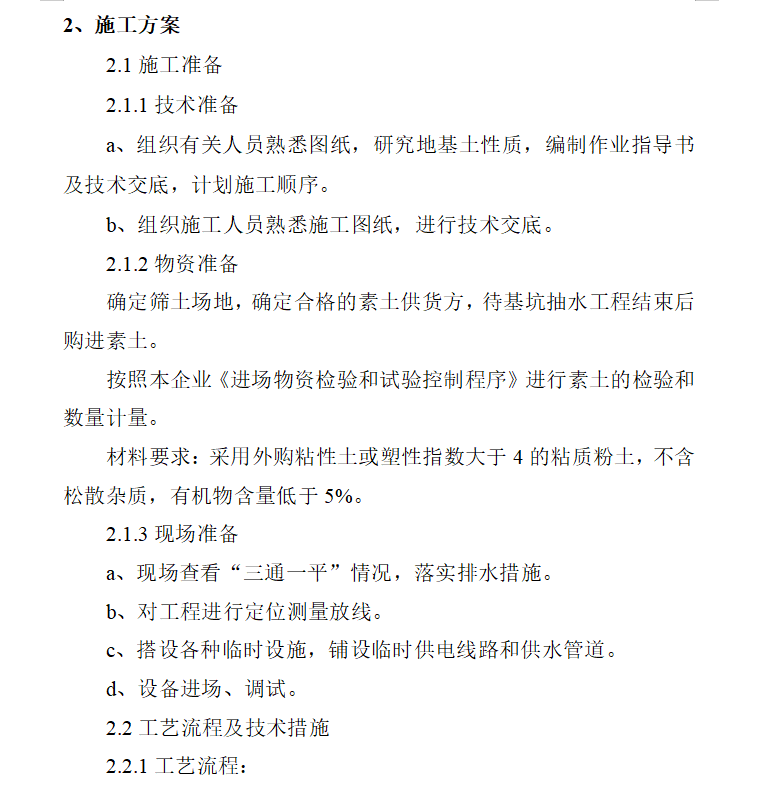 确定筛土场地,确定合格的素土供货方,待基坑抽水工程结束后购进素土。按照本企业《进场物资检验和试验控制程序》进行素土的检验和数量计量。