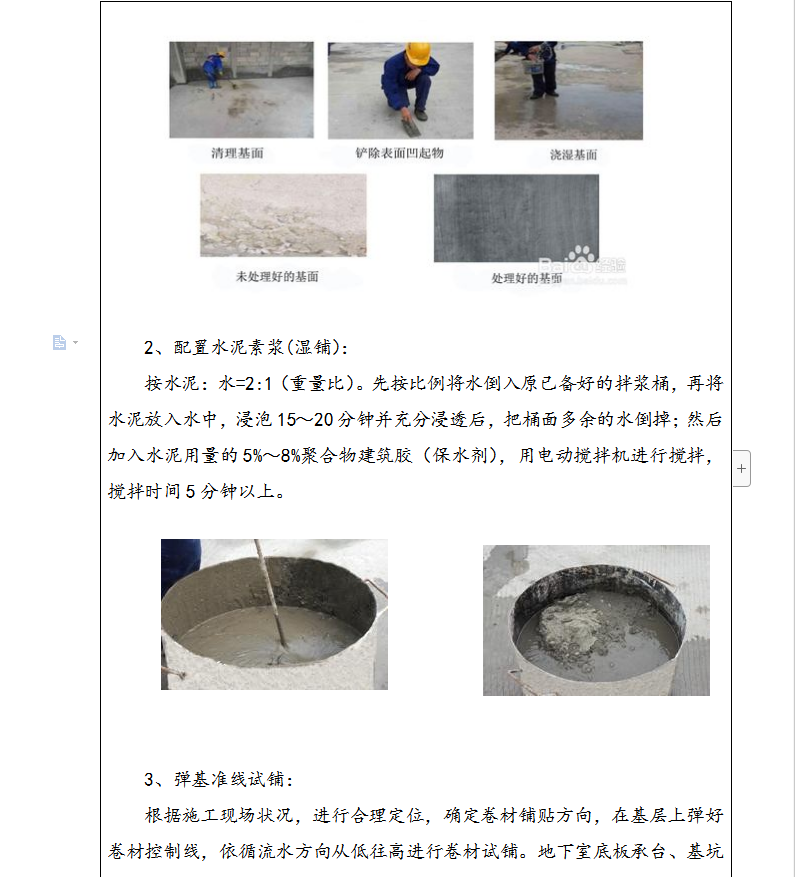 ÇåÀí»ù²ã¡ú»ùÃæµ¯Ïß¡ú½ÚµãÊ©¹¤¡úÆÌÉèʪÆÌ AF-3000·ÀË®¾í²Ä£¨¾í²Ä×ÔÕ³Ãæ³¯Ï£©¡ú¾í²Ä´î½Ó´¦Àí¡ú×Ô¼ì¡úÑéÊÕ¡ú½á¹¹Ê©¹¤