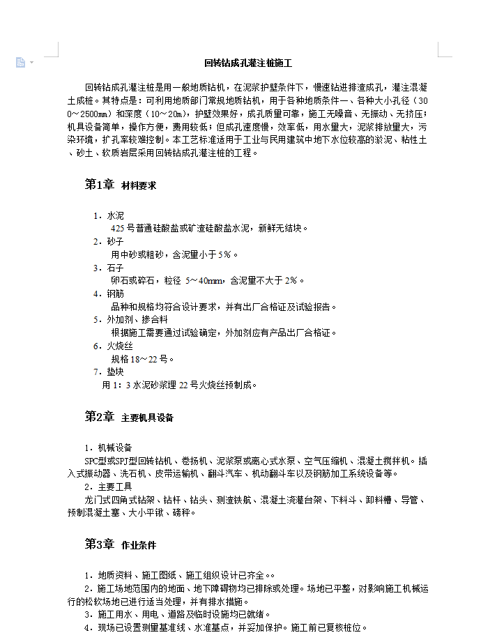 1.钻机就位前,先平整场地,铺好枕木并用水平尺校正,保证钻机平稳、牢固,在桩位埋设6~8mrn厚钢板护筒,内径比孔口大100~200mm,埋深1~1.5m,同时挖好水源坑、排泥槽、泥浆池等。