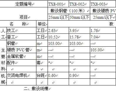 6. 顶棚内管路及线槽、明布缆线时,每100米定额工日调增10%。