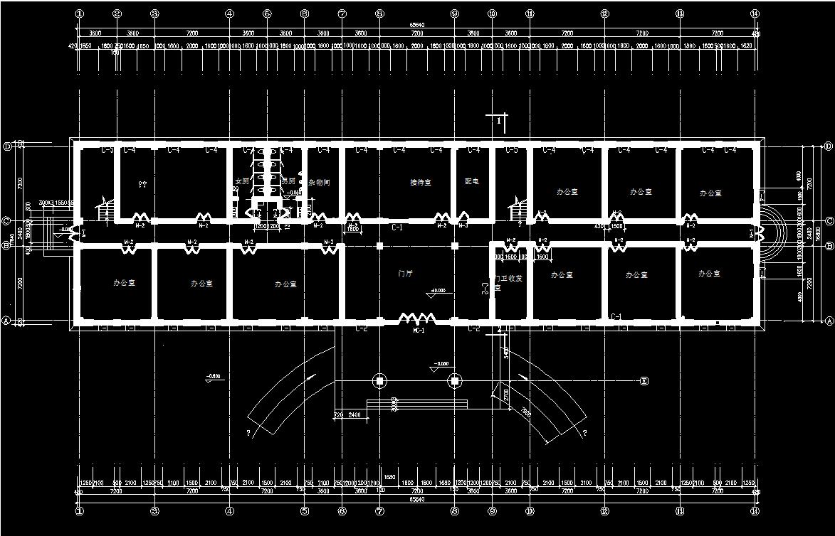 建筑类型:五层办公楼,框架填充墙结构。建筑介绍:建筑面积约5000平方米,楼盖及屋盖均采用现浇钢筋混凝土框架结构,楼板厚度取120mm,填充墙采用空心砖。框架结构是多高层建筑中常采用一种主要的结构形式。框架结构是由梁,柱,节点及基础组成的一种结构形式。框架结构按照结构布置的不同,主要分为横向框架承重,纵向框架承重及双向承重三种方案。