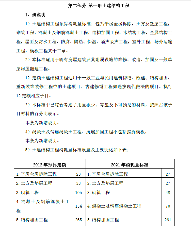 ÍÁ½¨¹¤³ÌÔ¤ËãÏûºÄÁ¿±ê×¼°üÀ¨ÍÁ½¨½á¹¹¹¤³Ì¡¢×°ÊÎ×°ÐÞ¹¤³Ì¹²¶þ²á¡£ÍÁ½¨½á¹¹¹¤³ÌÔ¤ËãÏûºÄÁ¿±ê×¼ÊÊÓÃÓÚ¼ÈÓз¿Îݽ¨Öþ¼°Æä¸½ÊôÉèÊ©µÄάÐÞ¡¢¸ÄÔì¡¢¼Ó¹Ì¼°Ò»°ãµ¥²ã·¿ÎÝ·­½¨¹¤³Ì;×°ÊÎ×°ÐÞ¹¤³ÌÔ¤ËãÏûºÄÁ¿±ê×¼ÊÊÓÃÓÚ¼ÈÓз¿Îݽ¨Öþ¼°Æä¸½ÊôÉèÊ©µÄάÐÞ¡¢¸ÄÔì¡¢ÖØÐÂ×°ÊÎ×°ÐÞ¹¤³Ì¡£