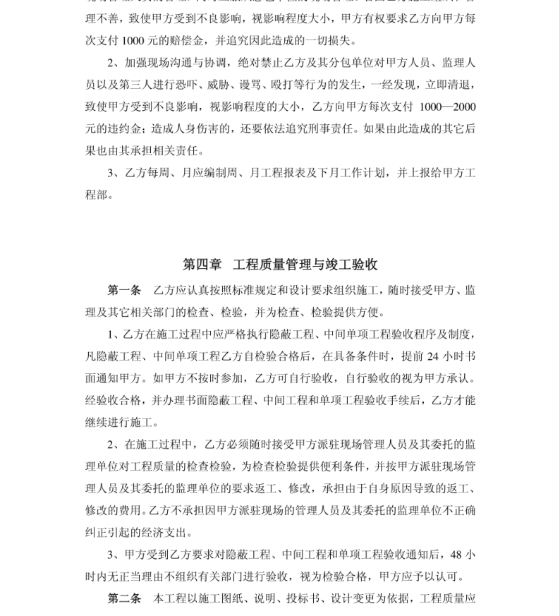 乙方在施工过程中应严格执行隐蔽工程、中间单项工程验收程序及制度, .凡隐蔽工程、中间单项工程乙方自检验合格后,在具备条件时,提前24小时书面通知甲方。如甲方不按时参加,乙方可自行验收,自行验收的视为甲方承认。经验收合格,并办理书面隐蔽工程、中间工程和单项工程验收手续后,乙方才能继续进行施工。