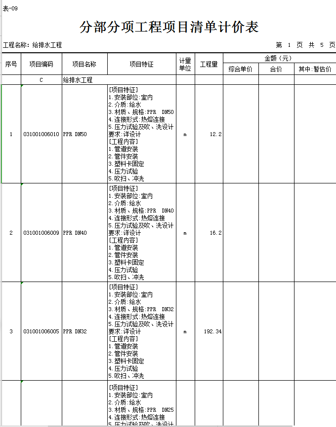 定额清单