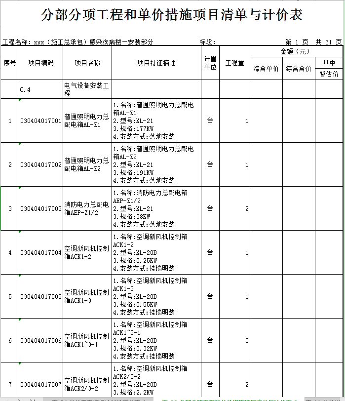 医科大学附属医院工程量清单(含招标文件)包括了1#住院综合楼、2#住院综合楼、感染疾病楼、行政综合楼、后勤综合楼、垃圾站、污水处理站等工程量清单。