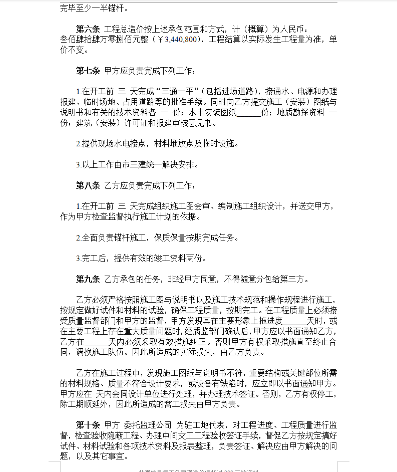 乙方在施工过程中,发现施工图纸与说明书不符,重要结构或关键部位所需的材料规格、质量不符合设计要求,或设备有缺陷时,应立即以书面通知甲方。甲方应在 天内会同设计单位进行处理,并办理技术签证。否则,乙方有权停工,除工期顺延外,因此所造成的窝工损失由甲方负责。