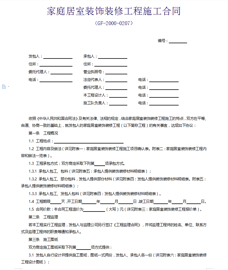 点击进入下载家庭居室装饰装修工程施工合同 12P