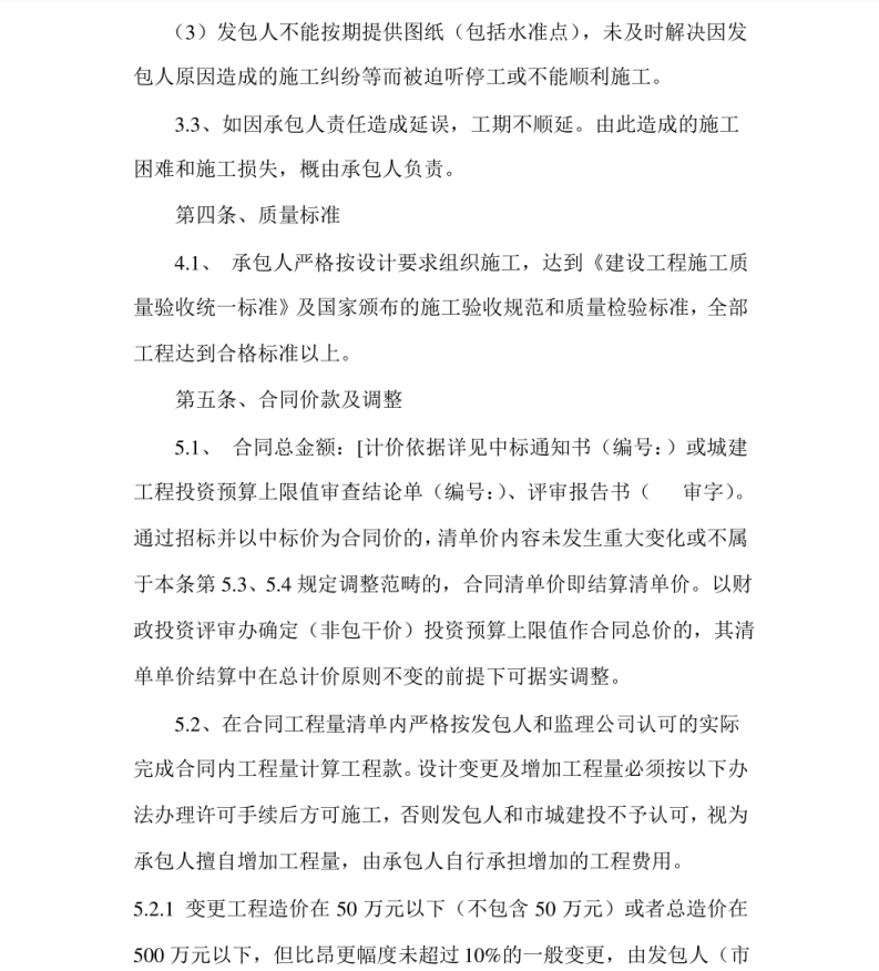 在合同工程量清单内严格按发包人和监理公司认可的实际完成合同内工程量计算工程款。设计变更及增加工程量必须按以下办法办理许可手续后方可施工,否则发包人和市城建投不予认可,视为承包人擅自增加工程量,由承包人自行承担增加的工程费用。