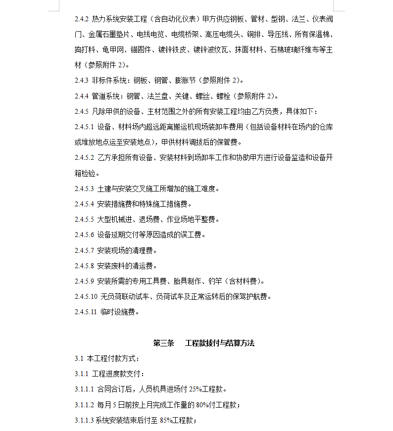 本工程系统内各设备、电气控制系统、发配电及照明系统、仪表系统安装和一切与本工程相关的非标制作及安装;负责完成与原生产线和供配电系统衔接并完成工程所在地电力部门因本工程联网等需要而要求完成工作。