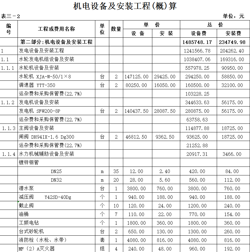 电站建安工程概算书包括:机电设备及安装工程(概)算、配电设备及安装工程(概)算、设备及安装(概)算工程、主要材料预算价格汇总表、施工机械台时费汇总表、主体工程主要材料用量汇总表、民工人工预算单价、主要材料运输费用计算表、主要材料及设备预算价格计算表等。