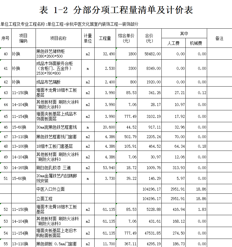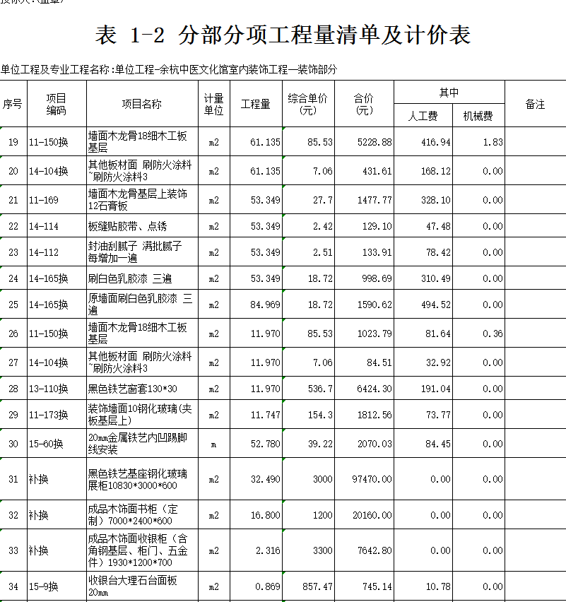 中医文化馆室内装饰工程预算书包括:分部分项工程量清单及计价表。