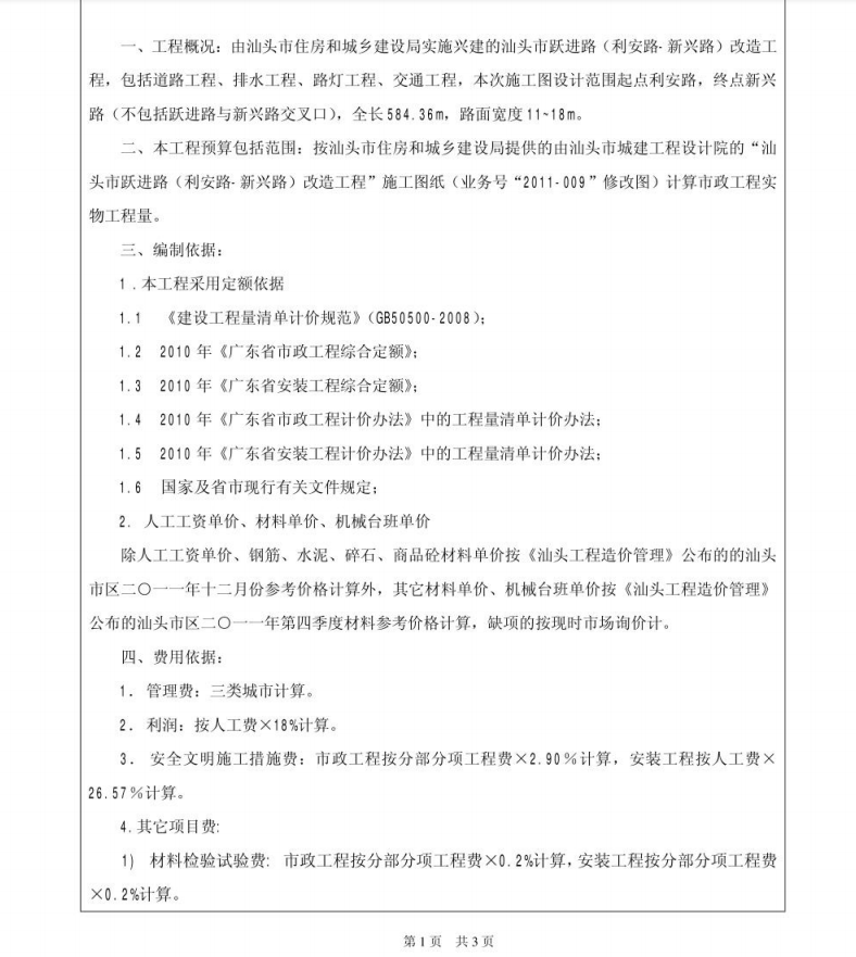 由xx市住房和城乡建设局实施兴建的xx市xx路(xx路xx路)改造工程,包括道路工程、排水工程、路灯工程、交通工程,本次施工图设计范围起点xx路,终点xx路(不包括xx路与xx路交叉口),全长584. 36m,路面宽度11-18m.