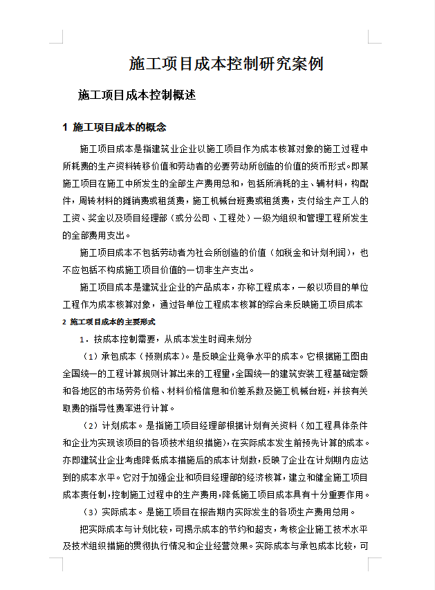 本资料为建筑工程施工项目成本控制研究及案例分析,共61页。