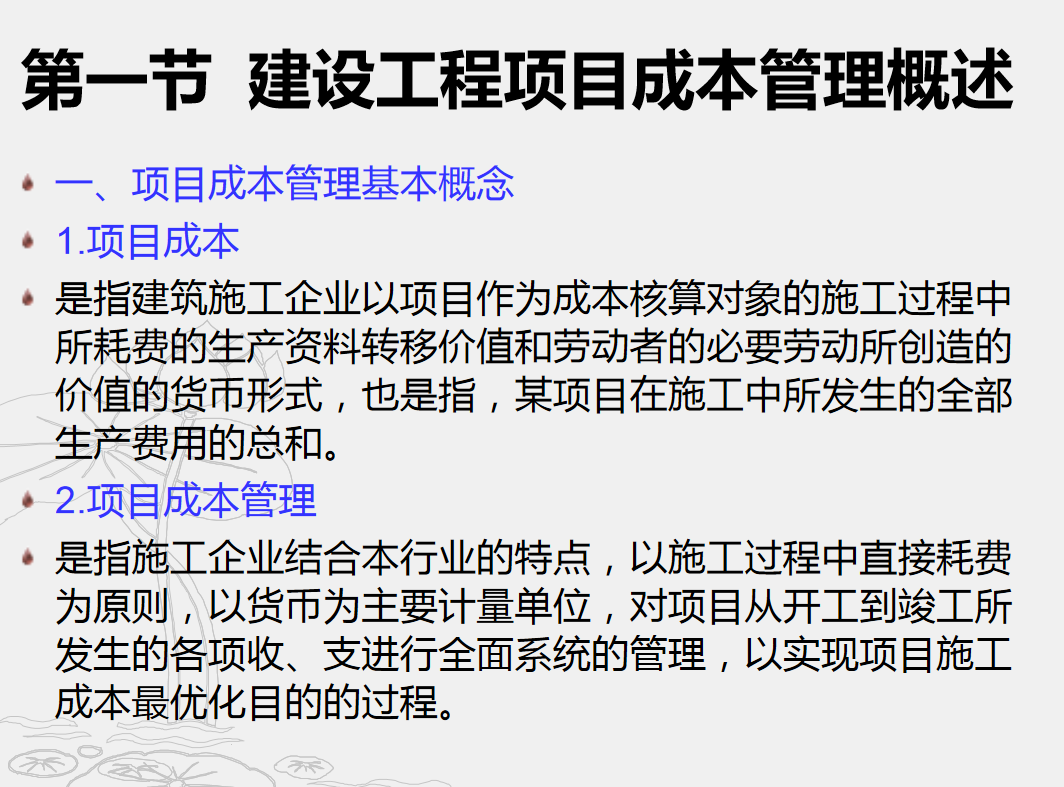 第一节 建设工程项目成本管理概述