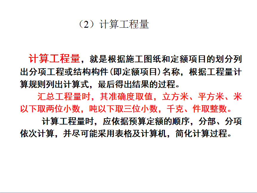 工程量 是指以物理计量单位或自然计量单位表示的分项工程或结构构件的实物数量。物理计量单位是指需经过度量的具有物理属性的单位,例如长度、面积、体积、重量等的单位。自然计量单位是指不需度量而是以建筑物的自然属性表示的计量单位,如座、台、套、个、组等单位。工程量的计算是十分重要的,工程量计算的准确度直接影响定额直接费,从而对工程造价造成很大影响。施工企业可以根据工程量的大小安排施工进度计划。工程量的计算十分复杂,而且工作量较大,一般地说,工程量计算所需的工作时间约占编制施工图预算所需全部时间的70%。