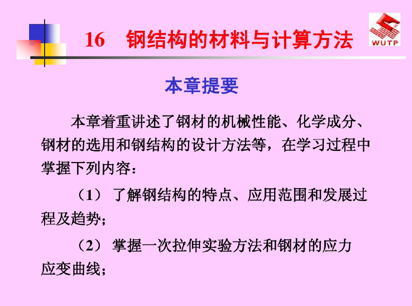 (1) 了解钢结构的特点、应用范围和发展过程及趋势;