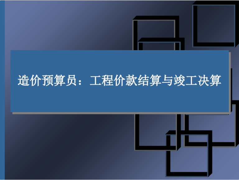 工程价款结算与竣工结算课件主要内容包括我国工程价款的结算(工程预付款\工程进度款的支付(中间结算) \工程竣工结算);FIDIC合同条件下的工程价款结算;工程变更;工程索赔;工程竣工决算