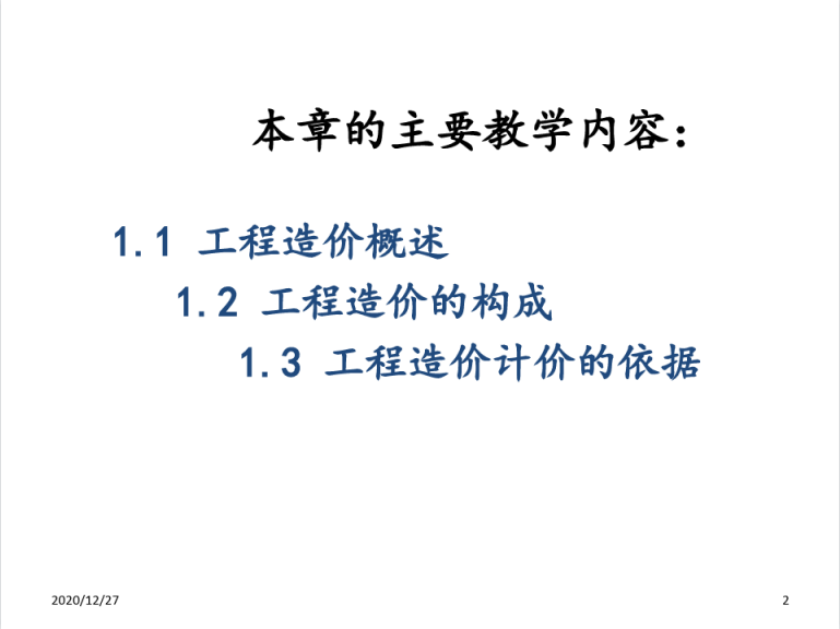 本章主要学习内容包括工程造价概述、工程造价的构成、工程造价计价的依据