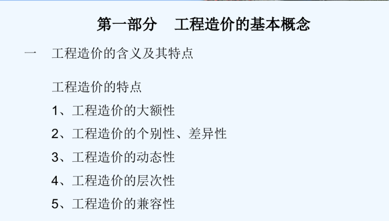 本课件主要学习内容包括工程造价的基本概念、基本建设相关内容、工程造价的基本内容、建设项目的划分、工程项目费用组成、工程造价定额、各个阶段的工程造价管理