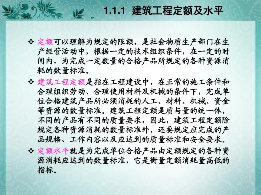 定额可以理解为规定的限额,是社会物质生产部门在生产经营活动中,根据一定的技术组织条件,在一定的时间内,为完成一-定数量的合格产品所规定的各种资源消耗的数量标准。