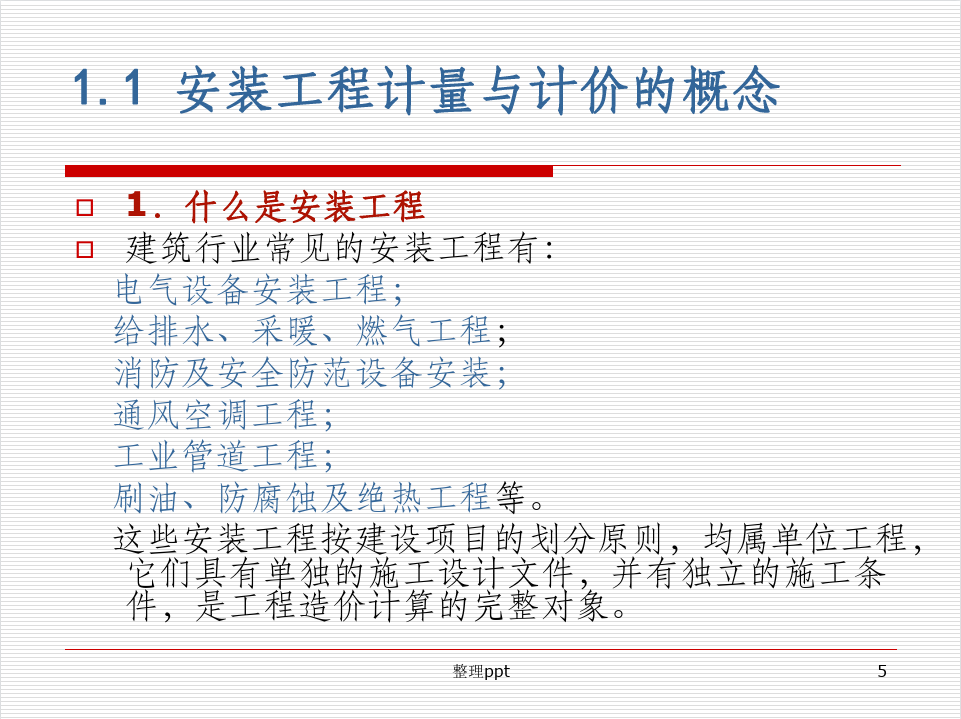 安装工程计量与计价水暖识图与预算课件包括:安装工程计量与计价概述、安装工程费用项目组成及计价程序、安装工程定额、给排水工程计量与计价、采暖工程计量与计价、燃气工程计量与计价、消防工程计量与计价。