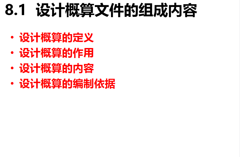 工程计量与造价管理-设计概算包括:设计概算文件的组成内容、单位工程概算的编制方法、单项工程综合概算的编制方法、建设项目总概算的编制方法、设计概算的审查。