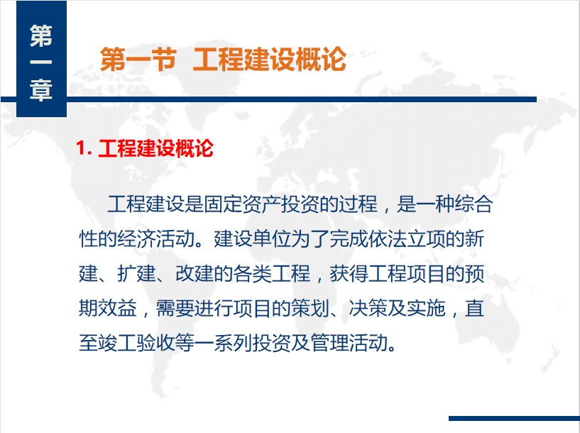 工程建设是固定资产投资的过程,是一种综合性的经济活动。建设单位为了完成依法立项的新建、扩建、改建的各类工程,获得工程项目的预期效益,需要进行项目的策划、决策及实施,直至竣工验收等一系列投资及管理活动。