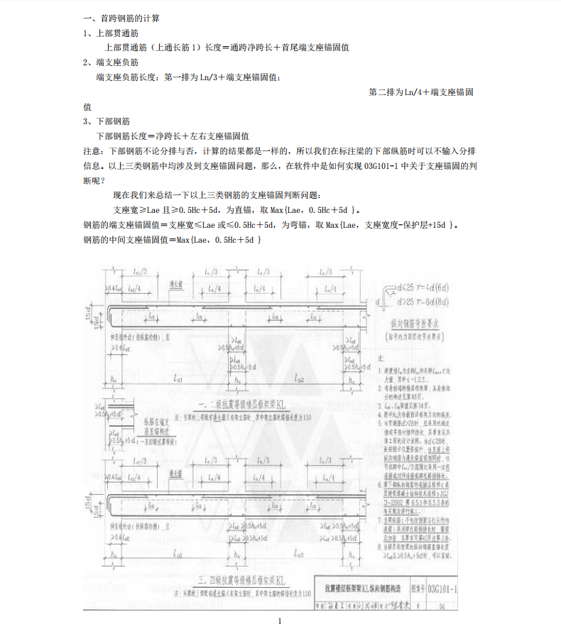 下部钢筋不论分排与否,计算的结果都是一样的,所以我们在标注梁的下部纵筋时可以不输入分排信息。以上三类钢筋中均涉及到支座锚固问题,那么,在软件中是如何实现 03G101-1 中关于支座锚固的判断呢?