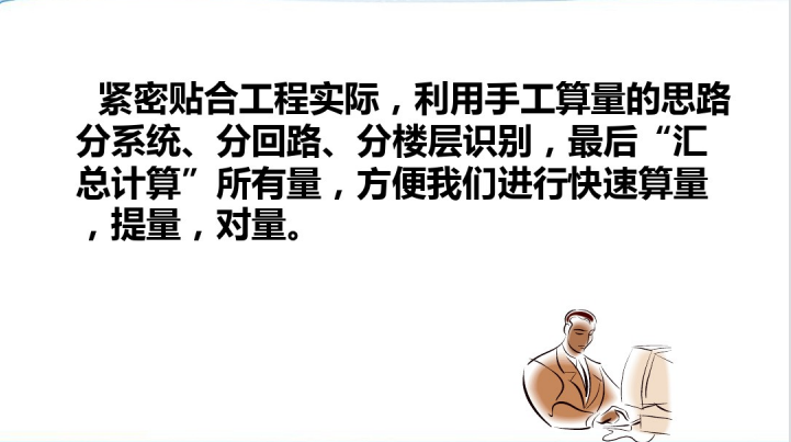 ½ôÃÜÌùºÏ¹¤³Ìʵ¼Ê,ÀûÓÃÊÖ¹¤ËãÁ¿µÄ˼··Öϵͳ¡¢·Ö»ØÂ·¡¢·ÖÂ¥²ãʶ±ð,×îºó¡°»ã×ܼÆË㡱ËùÓÐÁ¿£¬·½±ãÎÒÃǽøÐпìËÙËãÁ¿ÌáÁ¿,¶ÔÁ¿¡£