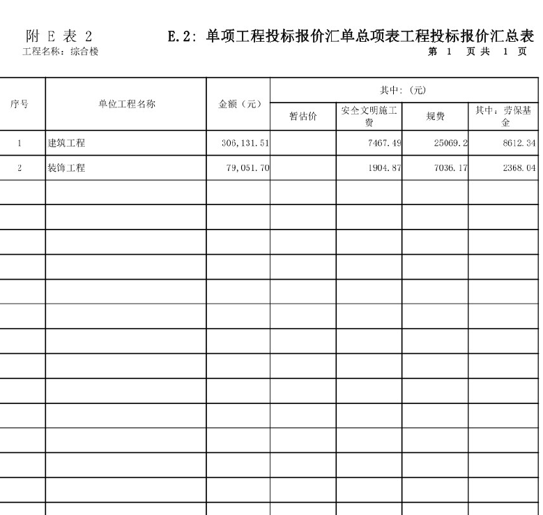 4.2 (装饰工程)单位工程投标报价汇总表...............
