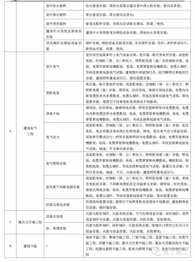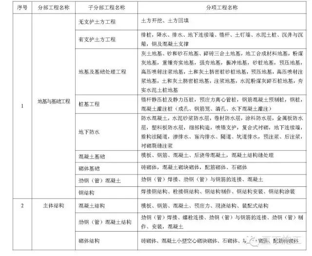 (3)分部工程验收记录中分项工程应该包括该分部中的所有分项工程:如地基基础分部应该包括桩基子分部内的分项,装饰装修工程应包括门窗、栏杆扶手等分项工程。