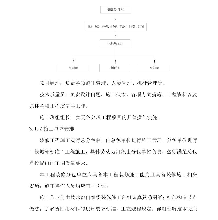 本工程装修复杂,施工交叉作业工种多,施工难度大,工期短,质量标准高“竣工长城杯”故在人力、物力、财力等方面优先满足工程工期质量需要;本工程采用矩阵式职能管理模式,派遣精干人员组成公司领导班子和现场管理班子,统一领导与协调。