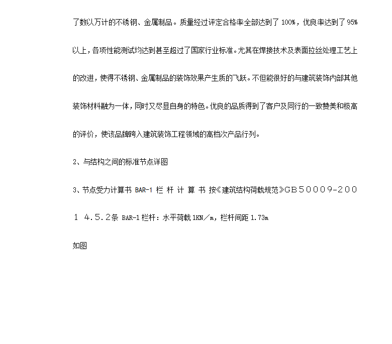 玻璃隔断、栏杆、扶手系统我司选用国内著名品牌-**金属制品有限公司生产的**牌不锈钢、金属制品。**金属制品有限公司是专业的金属制品生产厂家,具有二十多年从事不锈钢、金属制品生产、安装历史。是集开发、制造、安装、销售、服务为一体的专业化企业,1996年先后通过了ISO‐9001质量管理体系及ISO‐14001环境管理体系认证。该公司生产能力强大,技术实力雄厚,可以保证为****机场扩建工程3号航站楼精装修专业分包工程GTC交通中心按时保质保量的完成工程所需的玻璃隔断、栏杆、扶手系统的产品。