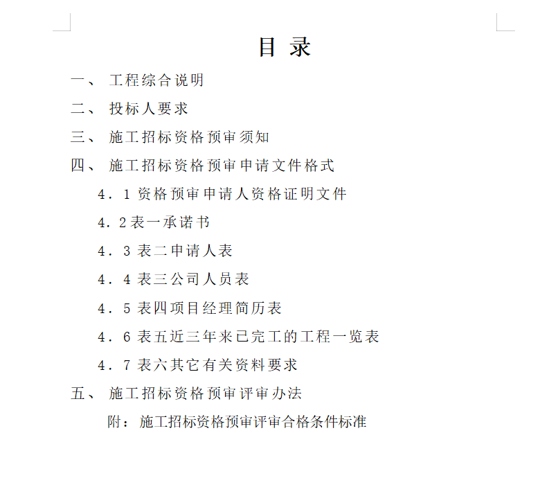 四、施工招标资格预审申请文件格式