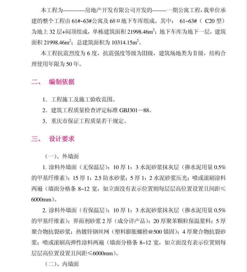 ±¾¹¤³ÌΪµØÉÏ32²ã+ÃÆ¶¥×é³É£¬µ¥¶°½¨ÖþÃæ»ý21998.46m2;µØÏ³µ¿âΪµØÏÂÒ»²ã£¬½¨ÖþÃæ»ý21998.46m2;×ܽ¨ÖþÃæ»ýΪ10314. 15m¡£±¾¹¤³Ì¿¹ÕðÁÒ¶ÈΪ6¶È£¬¿¹ÕðÇ¿¶ÈµÈ¼¶ÎªII¼¶£¬½¨Öþ³¡µØÀàΪII¼¶£¬½á¹¹ºÏÀíʹÓÃÄêÏÞΪ50Äê¡£