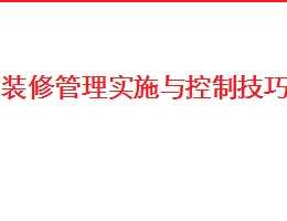 装修管理实施与控制技巧包括装修管理的意义、进行装修管理必备相关知识、住宅室内装饰装修管理办法、物业公司装修批准权限、装修不宜审批的情况、装修管理的流程设定等