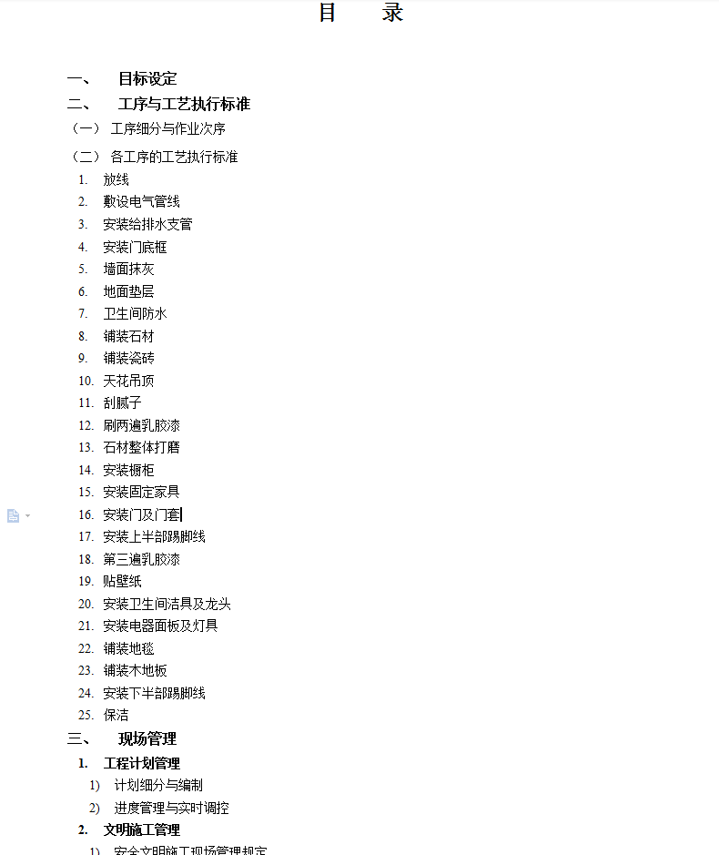 室内装修精细化管理是指:对装修项目的各项工作进行统筹、计划、实施和检查的管理过程,整个装修过程可分为设计、选材、施工、维保四大项工作,这四项工作需要遵循的最基本原则是:安全、实用、耐用;要达到的最核心和最高的目标是:将零缺陷产品按期交付给业主。精细化管理细则就是为这个管理过程提供准确、科学、细致的工作、检查的方法和依据。
