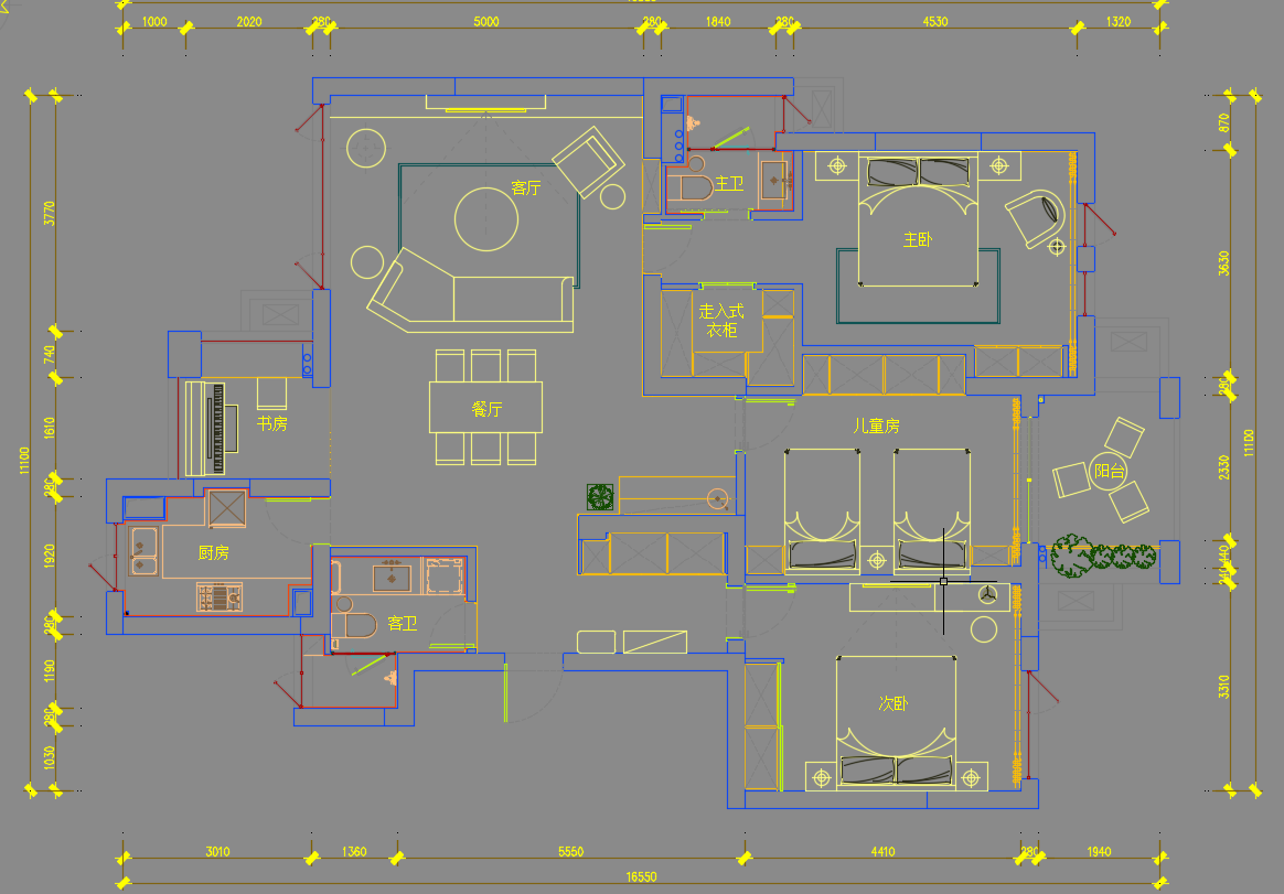 • 98㎡极简三居室住宅样板房装修施工图纸(含实景图)