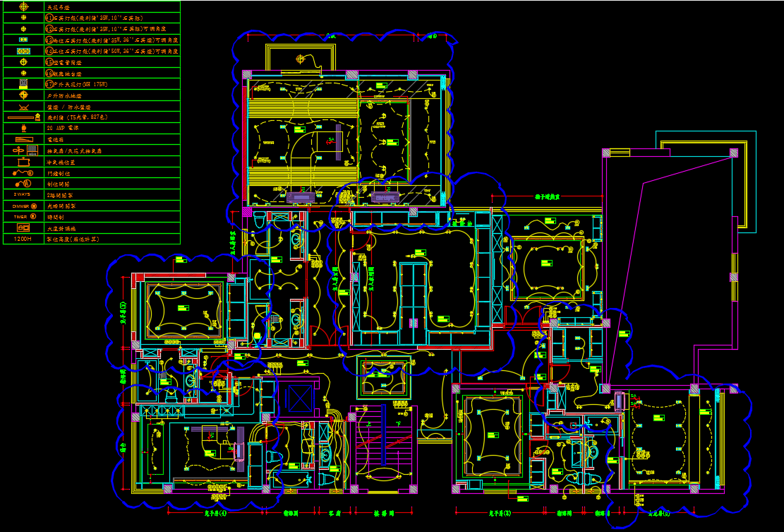 三层1500㎡别墅样板房室内装修施工图纸(含效果图)包括了地下室平面布置图、一层平面图、地下层电制分布平面图、二层电制分布平面图、地下层天花冷气分布平面图、二层天花冷气分饰平面图、地下层天花及灯饰分布平面图、一层天花及灯饰分布平面图、二层地面用料分布平面图、三层地面用料分佈平面图、衣帽间立面图、衣柜内造型立面图、化妝间立面图、走廊立面图、储物室立面图、主人浴室立面图等。