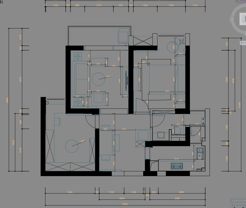 90㎡一居室住宅样板房室内装修施工图纸(含效果图)