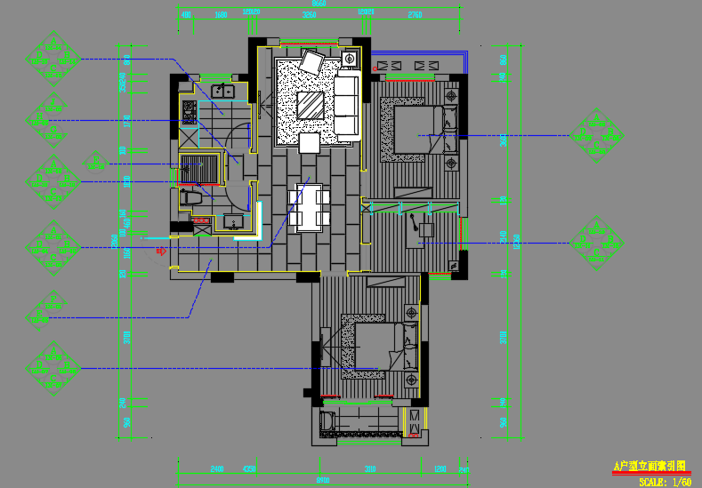 • 103㎡两居室住宅样板房室内装修施工图纸(含效果图)